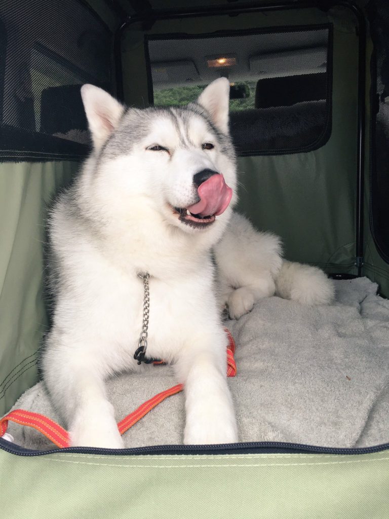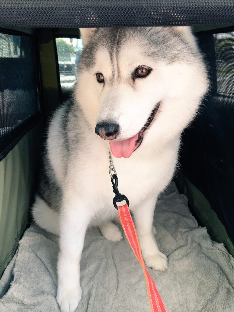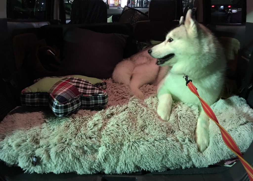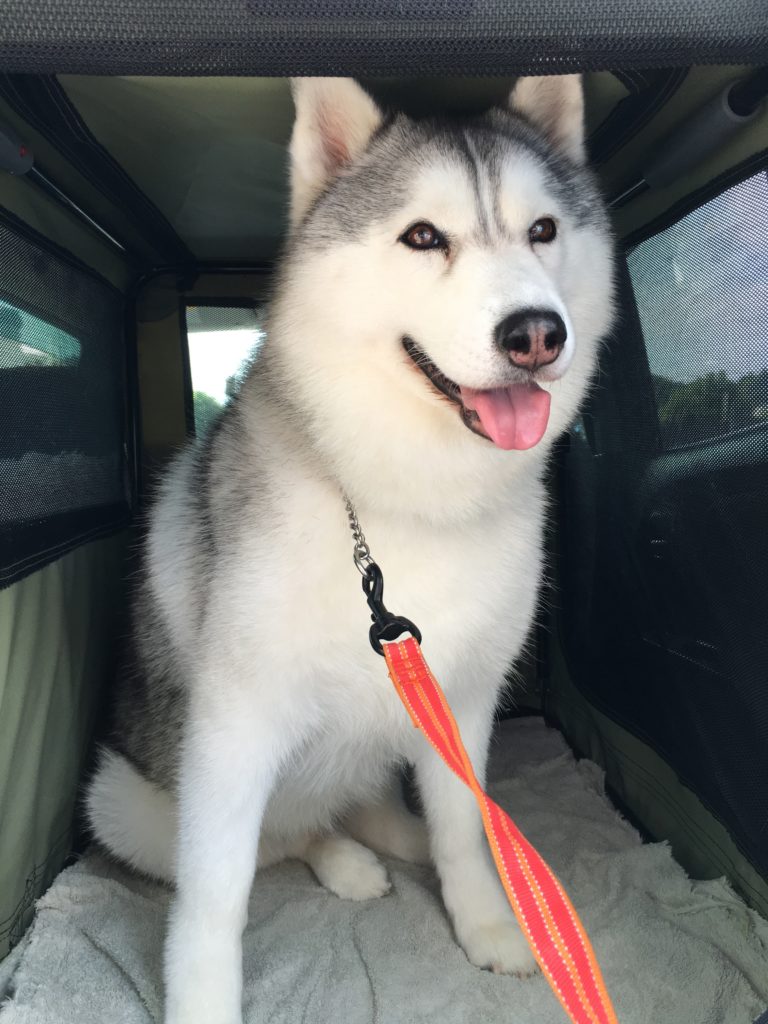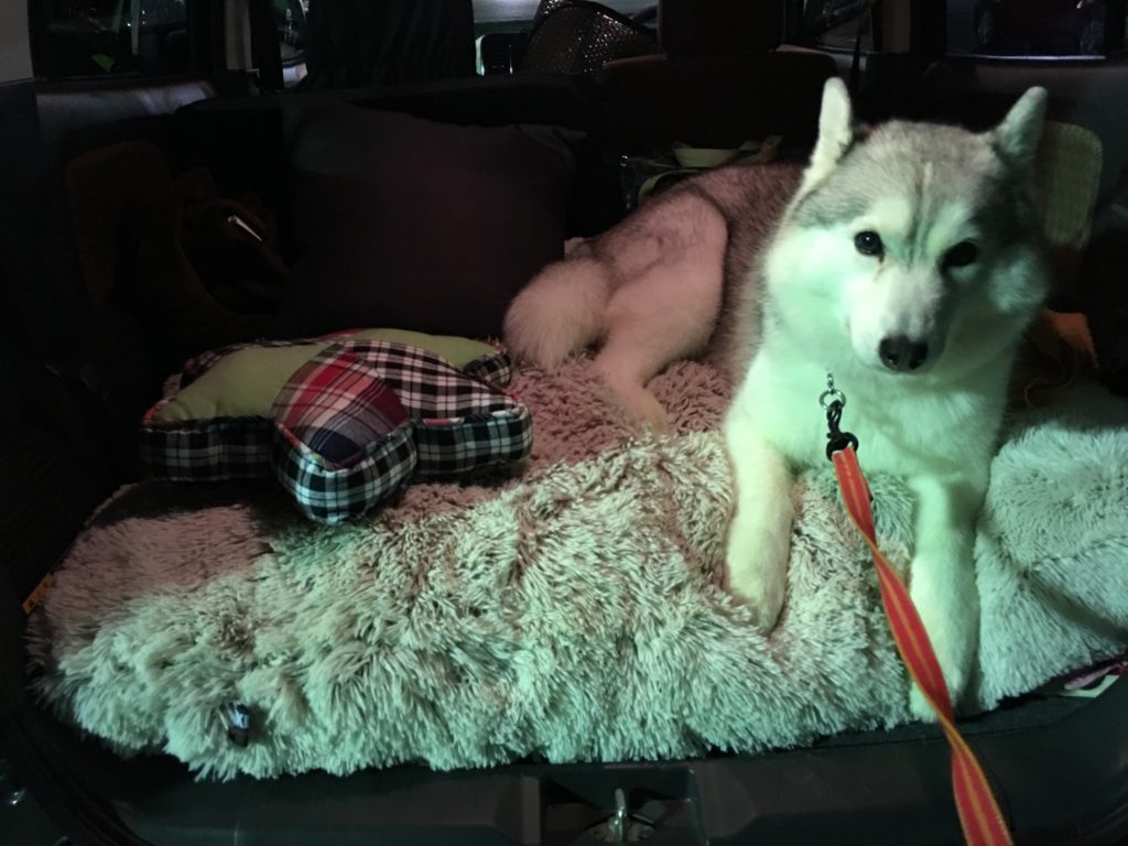 おシルを少し散歩させたら「まだ散歩する」と言い張り車に乗りたがらず…。