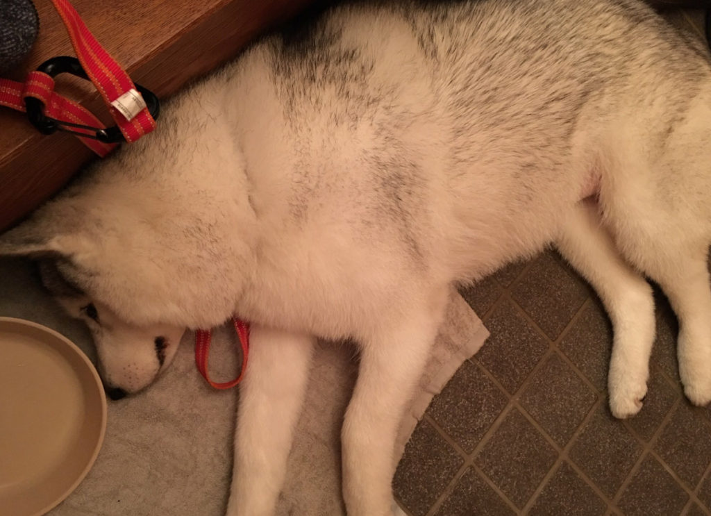暑くて目が覚めた!おしるはハァハァいっていた。