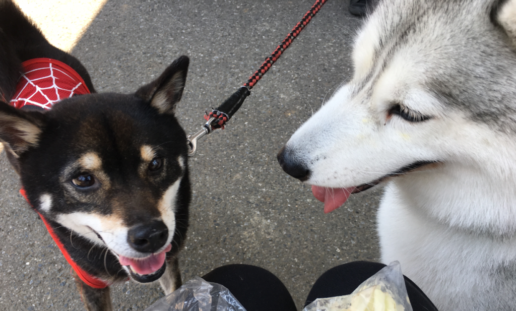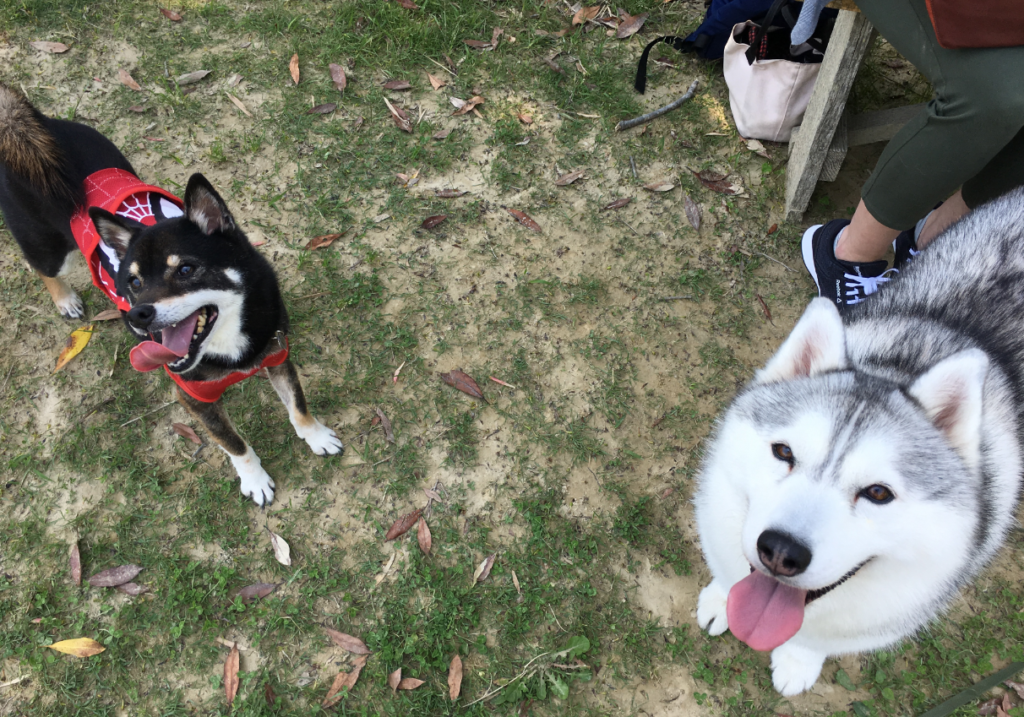 ドッグランで遊んでたらフェンス越しに小さな子達がかまってくれたよ。おシルは甥くん姪ちゃん達と一緒に育ってるので小さい子も好きみたいで。外を移動するオチビちゃんたちについていってた(笑)