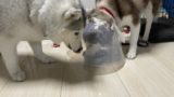 Twitterユーザーのハマジさんは4月19日、「パラボラガードには勝てん」というコメントと共に写真を投稿。写真にはごはんを食べているハマジさんの愛犬2匹が写っていますが、1匹がエリザベスカラーを付けているため、もう1匹が食べられなくなって...