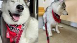 お出かけ前は超ご機嫌だったハスキー→病院に着いたら…… ワンコの表情ビフォーアフターが面白かわいい