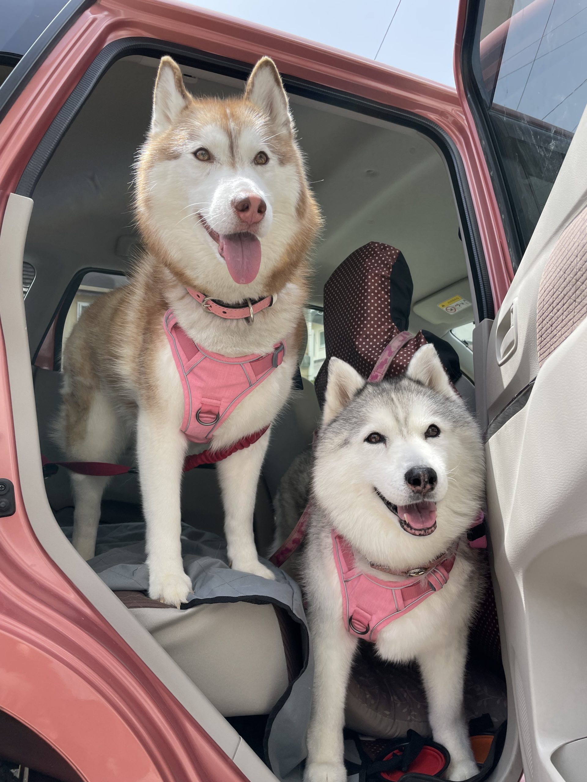 っつーか車もピンクだし愛犬もピンクの首輪&ハーネスでめちゃくちゃピンクだな。かわゆ。