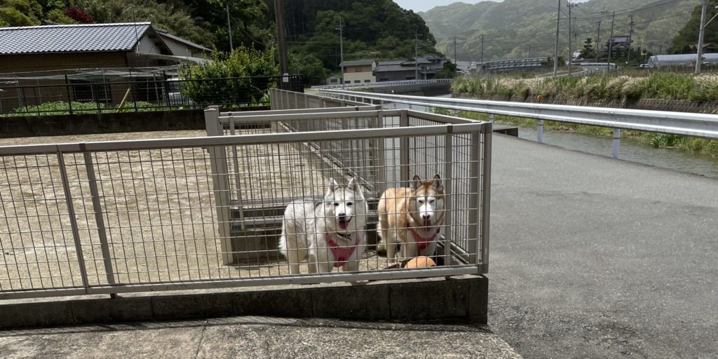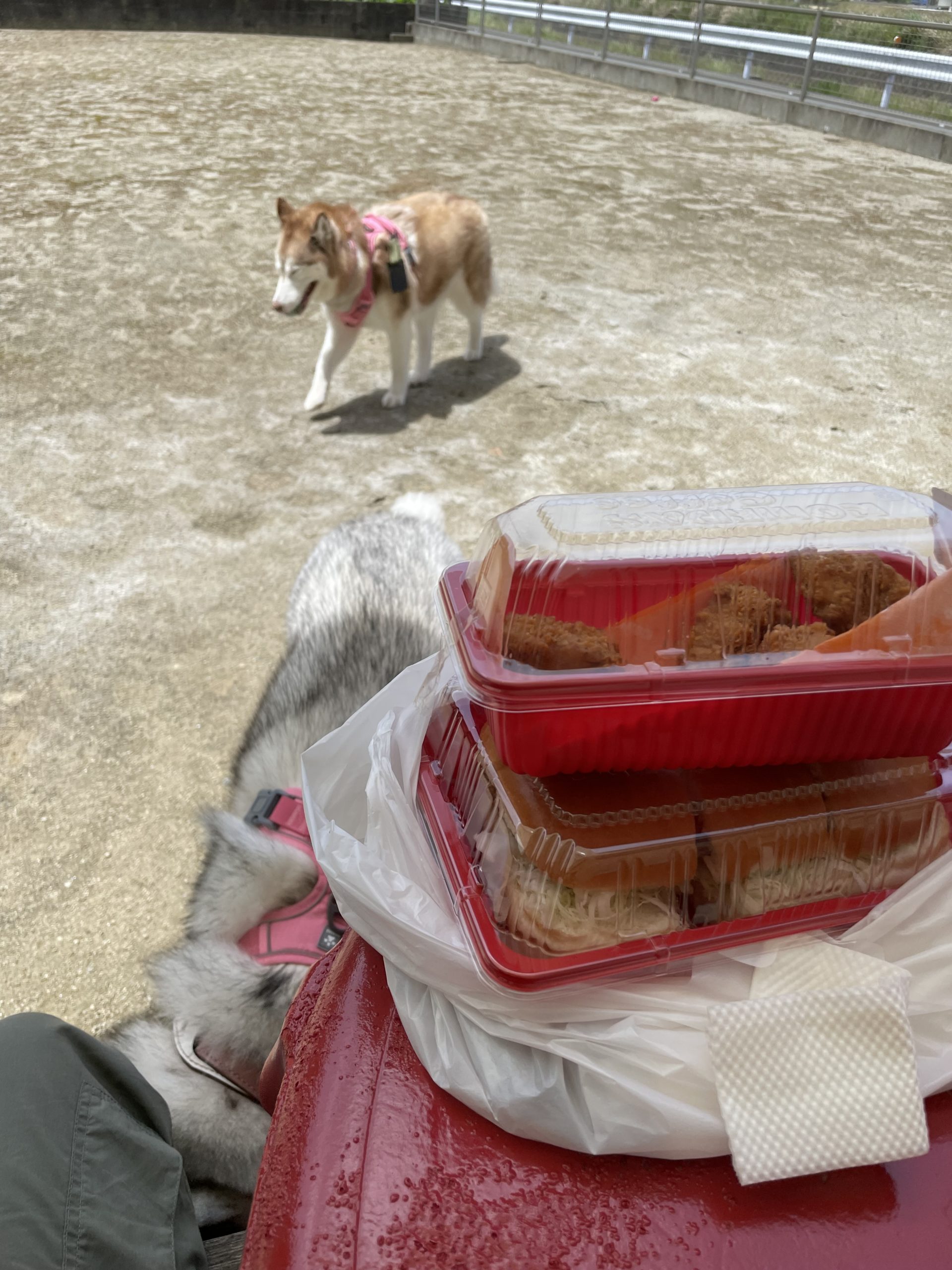 次に、コメダ珈琲でゴハンを買ってそれからドッグランフリーダムさんにお邪魔しました。首輪屋さんに行く前にシルとシャンを走らせて少し疲れさせるって作戦です。その間私は朝昼ごはんを食べるのだ。完璧…。