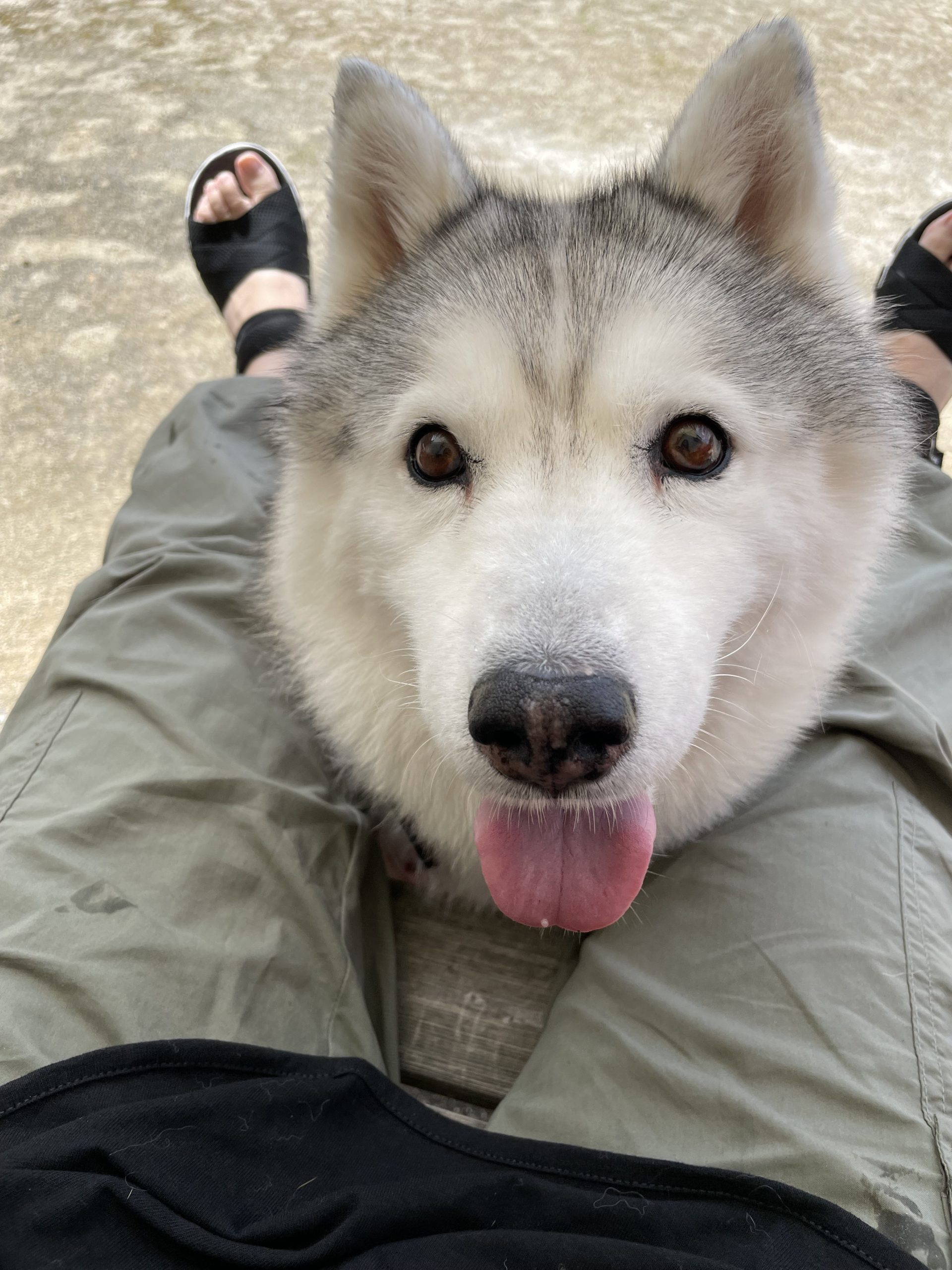 車に荷物取りに行って、ランに戻ったらこっち見てた。愛しすぎる。