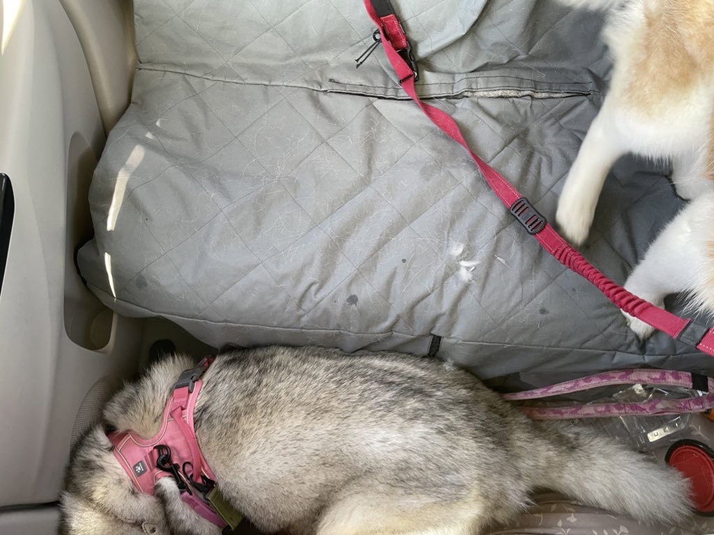 この毛まみれをコロコロするのダルいですが頑張ってコロコロして車内清掃して帰宅しました。